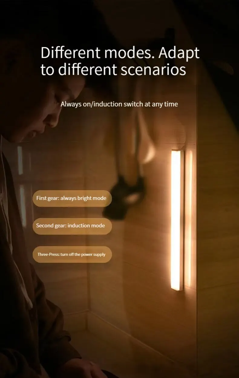• Intelligent Wireless Long Strip Body Sensor :The LED light is equipped with a body sensor that automatically turns on when it detects movement, making it convenient to use in dark areas.